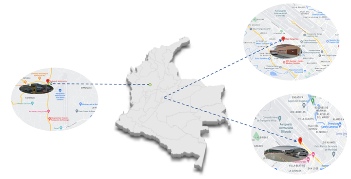Onsite esta ubicado estratégicamente en las ciudades de Bogotá y Rionegro cerca de los aeropuertos de estas dos ciudades permitiendo la conexión de cargas por vía aérea y terrestre asi mismo contamos con una bodega satelital en el terminal de carga No. 1 del aeropuerto El Dorado en Bogotá lo cual nos perite hacer operaciones especializadas de transferencias entre aerolíneas, revisión por parte de las entidades de control (ICA, Policía fisca y aduanera)